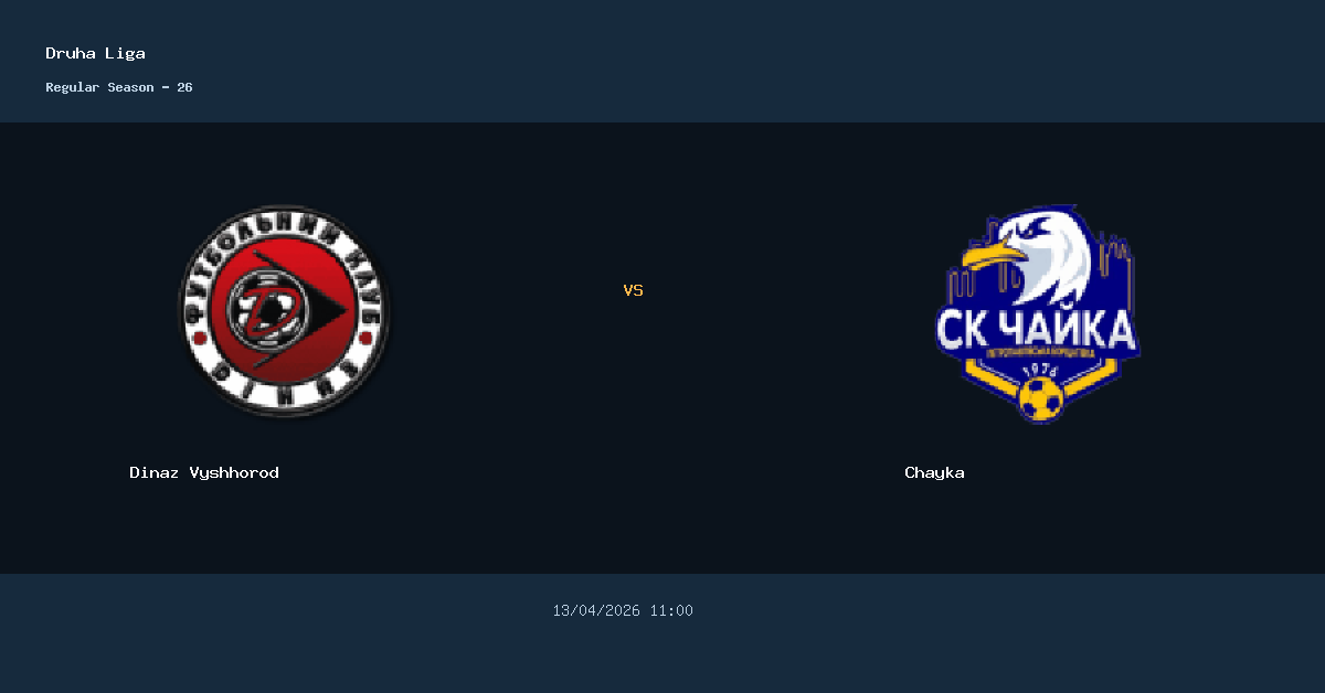 O confronto entre Dinaz Vyshhorod e Chayka acontece em Dinaz Stadium pela Druha Liga. A partida esta marcada para 13/04/2026 11:00.