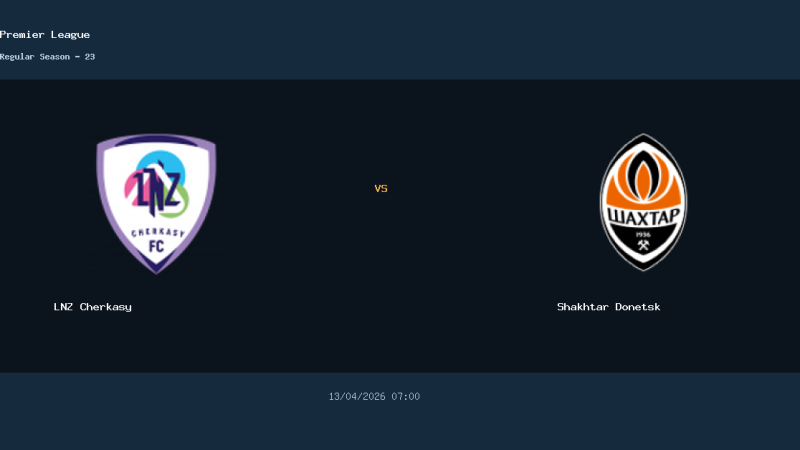 hedmiltonMovimento Country acompanha o pre-jogo de LNZ Cherkasy x Shakhtar Donetsk pela Premier League, com partida marcada para 13/04/2026 07:00.