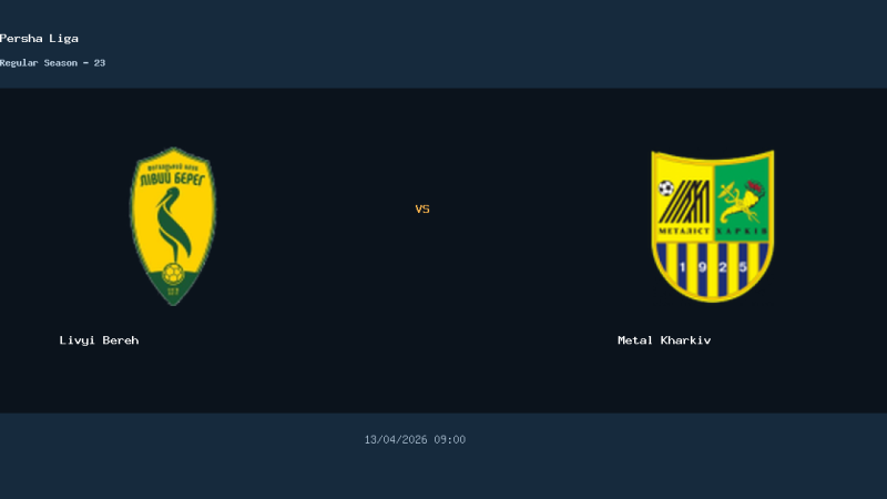 hedmiltonMovimento Country acompanha o pre-jogo de Livyi Bereh x Metal Kharkiv pela Persha Liga, com partida marcada para 13/04/2026 09:00.