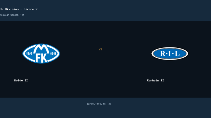 hedmiltonMovimento Country acompanha o pre-jogo de Molde II x Ranheim II pela 3. Division - Girone 2, com partida marcada para 13/04/2026 09:00.