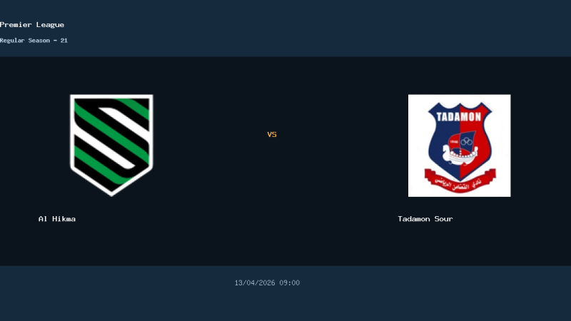 hedmiltonMovimento Country acompanha o pre-jogo de Al Hikma x Tadamon Sour pela Premier League, com partida marcada para 13/04/2026 09:00.