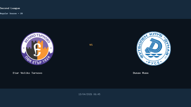 Futebol 12 de abril de 2026 1 min de leitura Etar Veliko Tarnovo x Dunav Ruse: veja os detalhes da partida em 13/04/2026 06:45 Read more Movimento Country acompanha o pre-jogo de Etar Veliko Tarnovo x Dunav Ruse pela Second League, com partida marcada para 13/04/2026 06:45. hedmilton